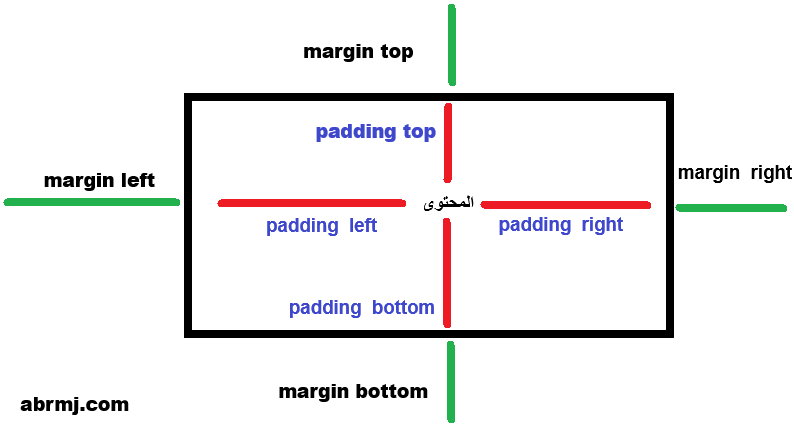| Margin | خارج العنصر | يزيد المسافة بين العناصر وبعضها |